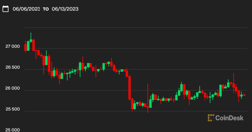 BTC has been stagnant below $26,000 for much of the past four days as investors set aside angst about Securities and Exchange Commission (SEC) lawsuits against crypto exchanges Binance and Coinbase, and awaited the latest inflation reading and Wednesday’s Federal Reserve interest rate decision.