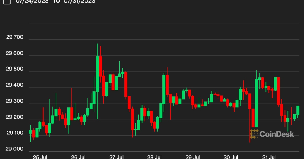 Bitcoin is down 0.16% to $29,236, and ether is changing hands at $1,857, down 0.27%.