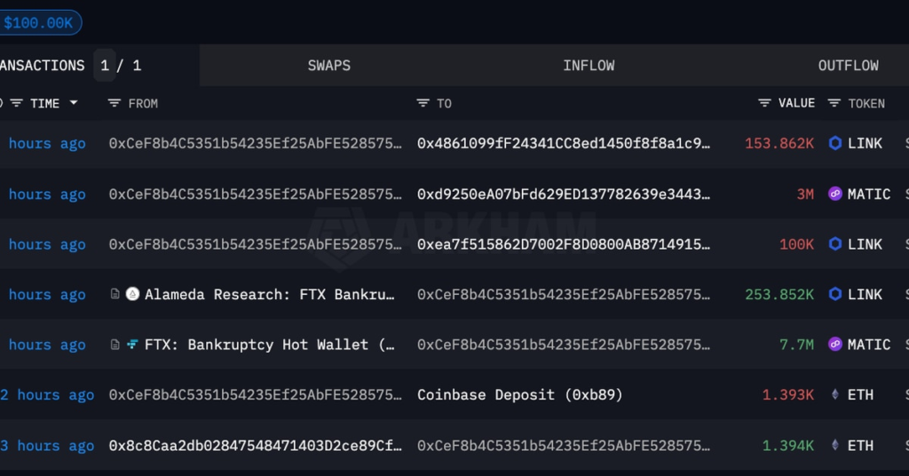 Bankrupt crypto exchange FTX moved another batch of crypto assets worth millions including Chainlink’s LINK and Polygon’s MATIC Thursday afternoon, blockchain data revealed.