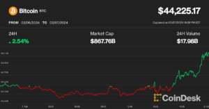 BTC broke above $44,000 for the first time since Jan. 12, the day after the spot ETF...