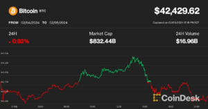 Cryptocurrencies slid lower Monday with bitcoin nearing $42,000 as soaring U.S. interest rates amid strong economic data,...