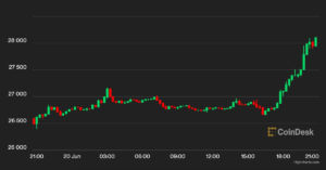 Bitcoin (BTC) surged above $28,000 Tuesday afternoon in the largest short squeeze this month. The largest cryptocurrency...